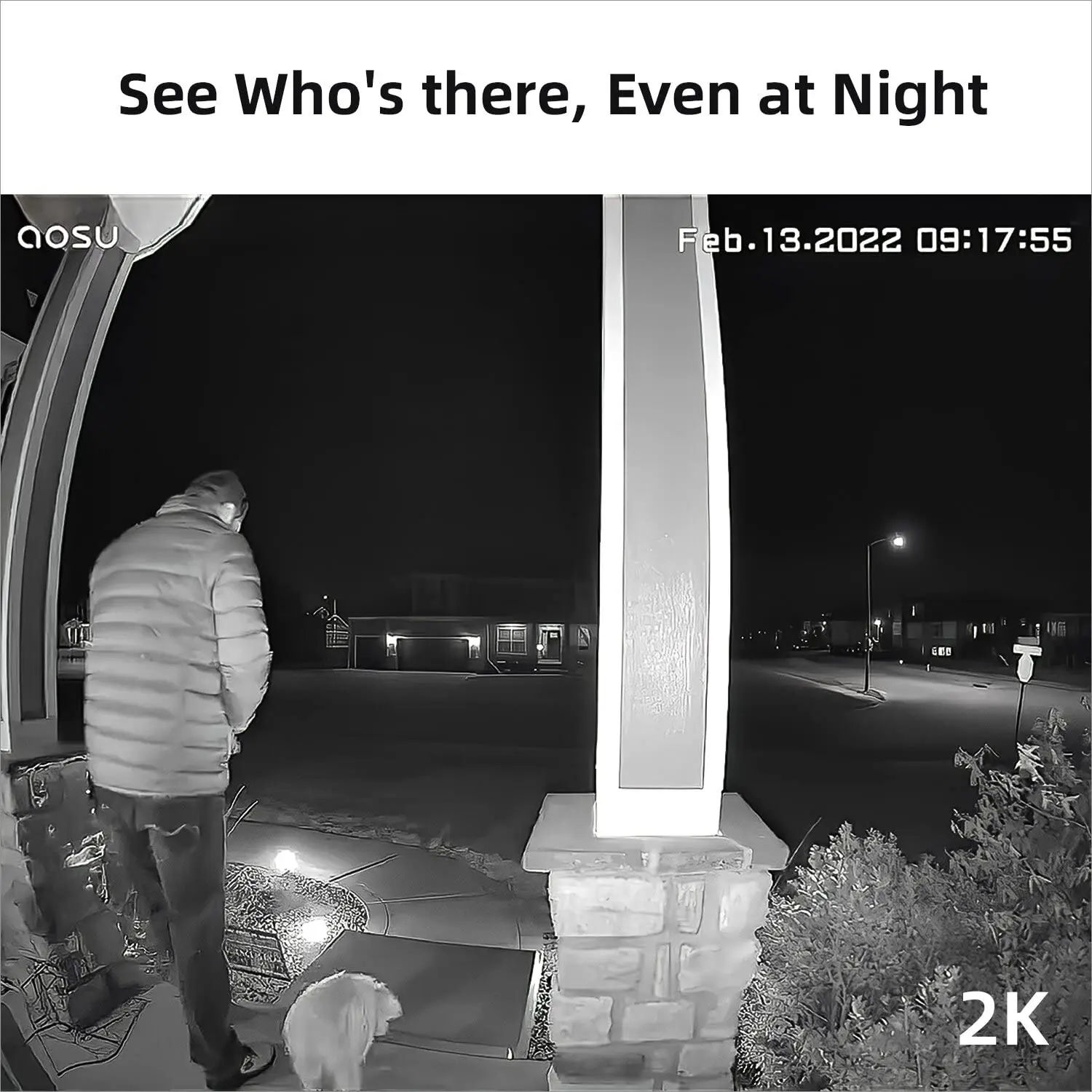With 166°wide viewing angle, 4:3 aspect ratio, you could see a person from head to toe or the package on the ground See the Whole Picture in 2K Resolution.