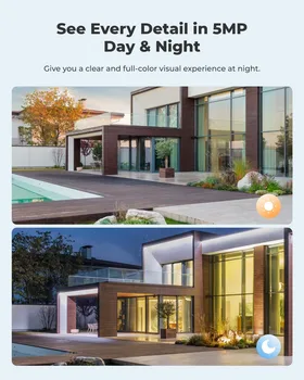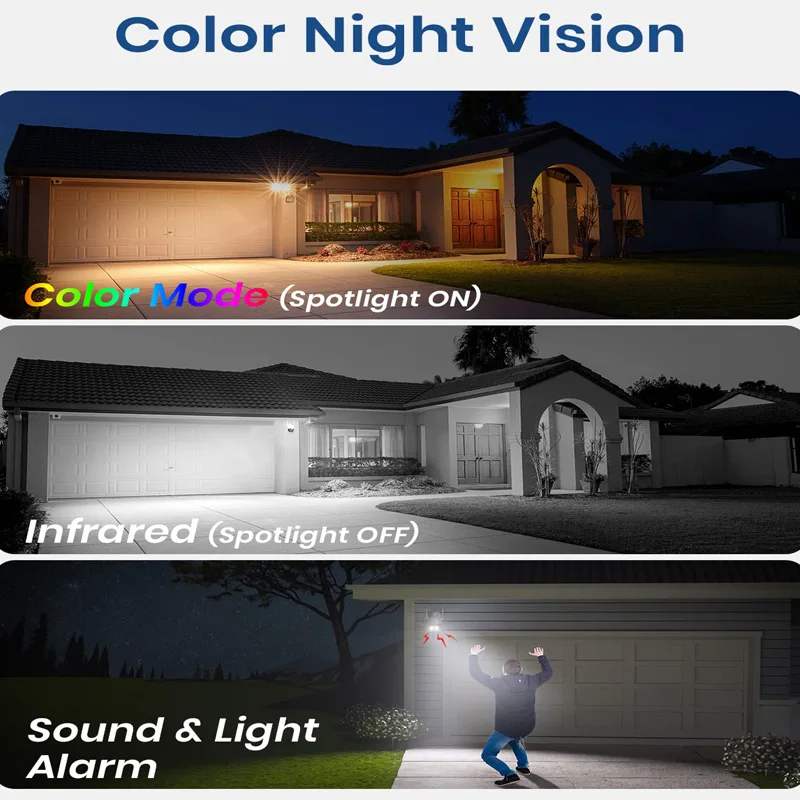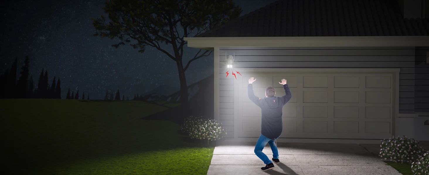 See Every Detail, Day and Night: With 2K picture quality and built-in spotlights, our outdoor security camera captures crystal-clear footage, even in pitch-black conditions.