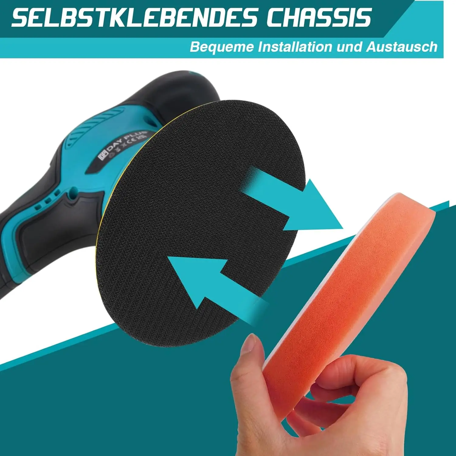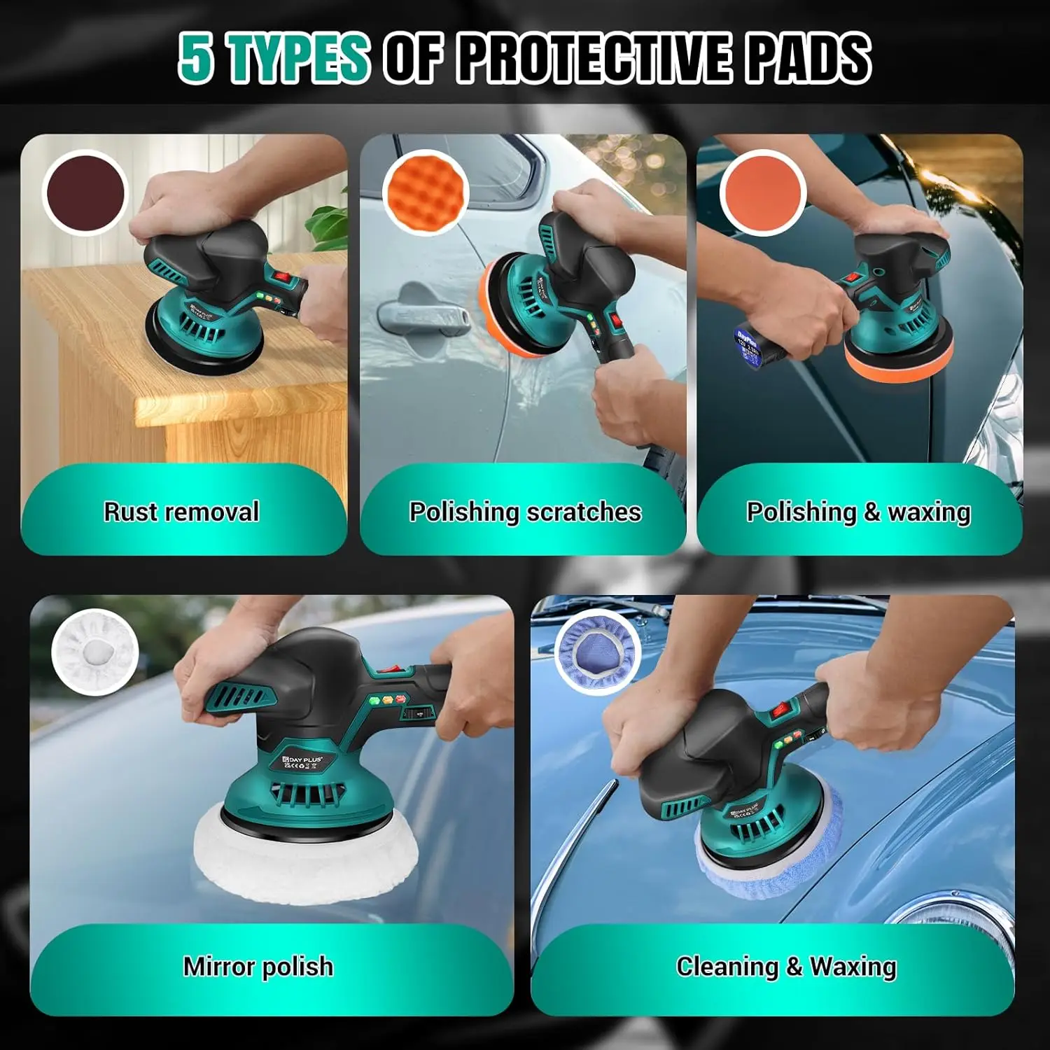 4. High quality – The car polishing machine set is equipped with a powerful brushless motor that produces less noise and a stable spin effect, perfect for waxing and polishing your car. The 12 mm orbit of this battery polishing machine makes the work more stable. In addition, there are several heat dissipation openings. It will not cause overheating during operation.