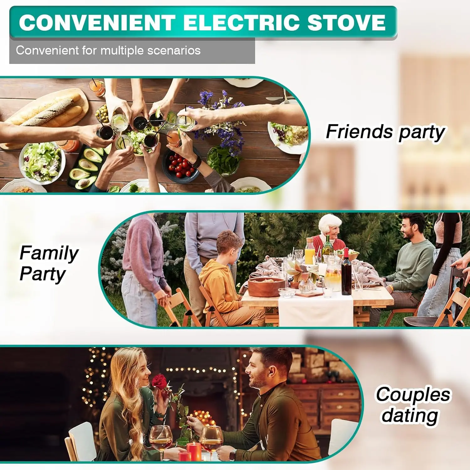 🍳PORTABLE HOTPLATE FOR VARIETY OF APPLICATIONS – This portable electric Hotplate can increase your cooking space when hosting a large party. It’s also great for using outdoors, in a camper van or taking away to your vacation cottage. College students love using our small electric cooktop in their small apartments or dorm rooms.