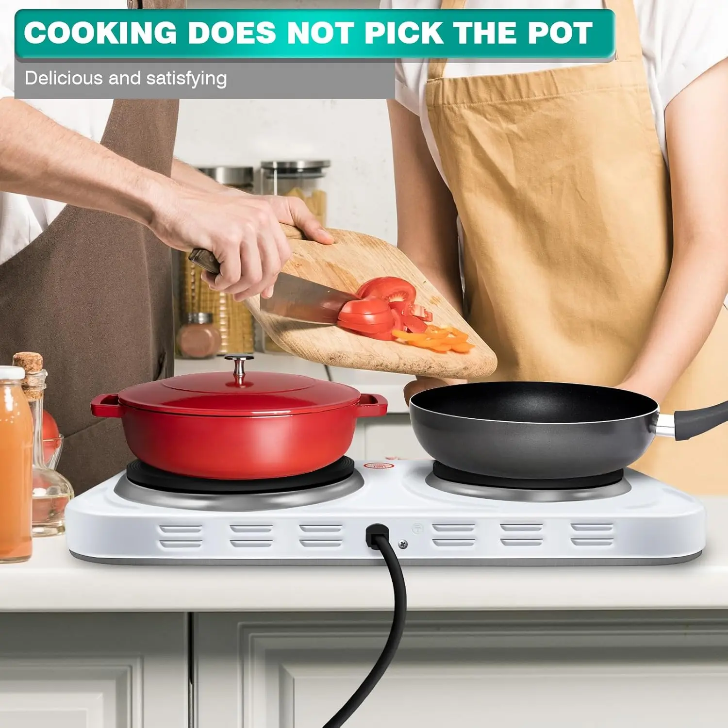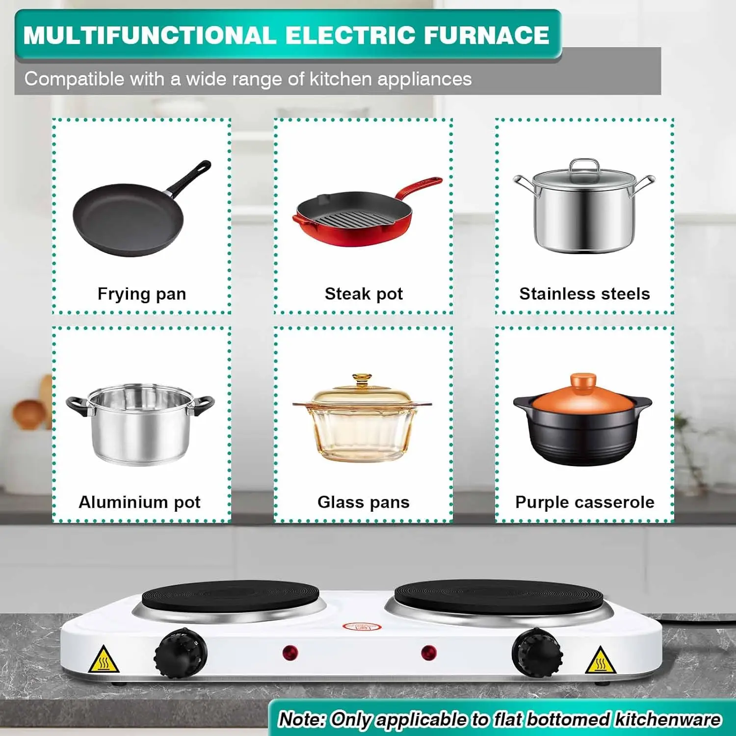 🍳USE IT WITH ANY POT, COMMERCIAL OR RESIDENTIAL – Unlike induction burners which require magnetic cooking pots, you can use any pot, pan or wok you have in your house. Aluminum cookware, copper pots, cast iron skillets, nonmagnetic stainless-steel pots will all work with this electric cooktop burner.