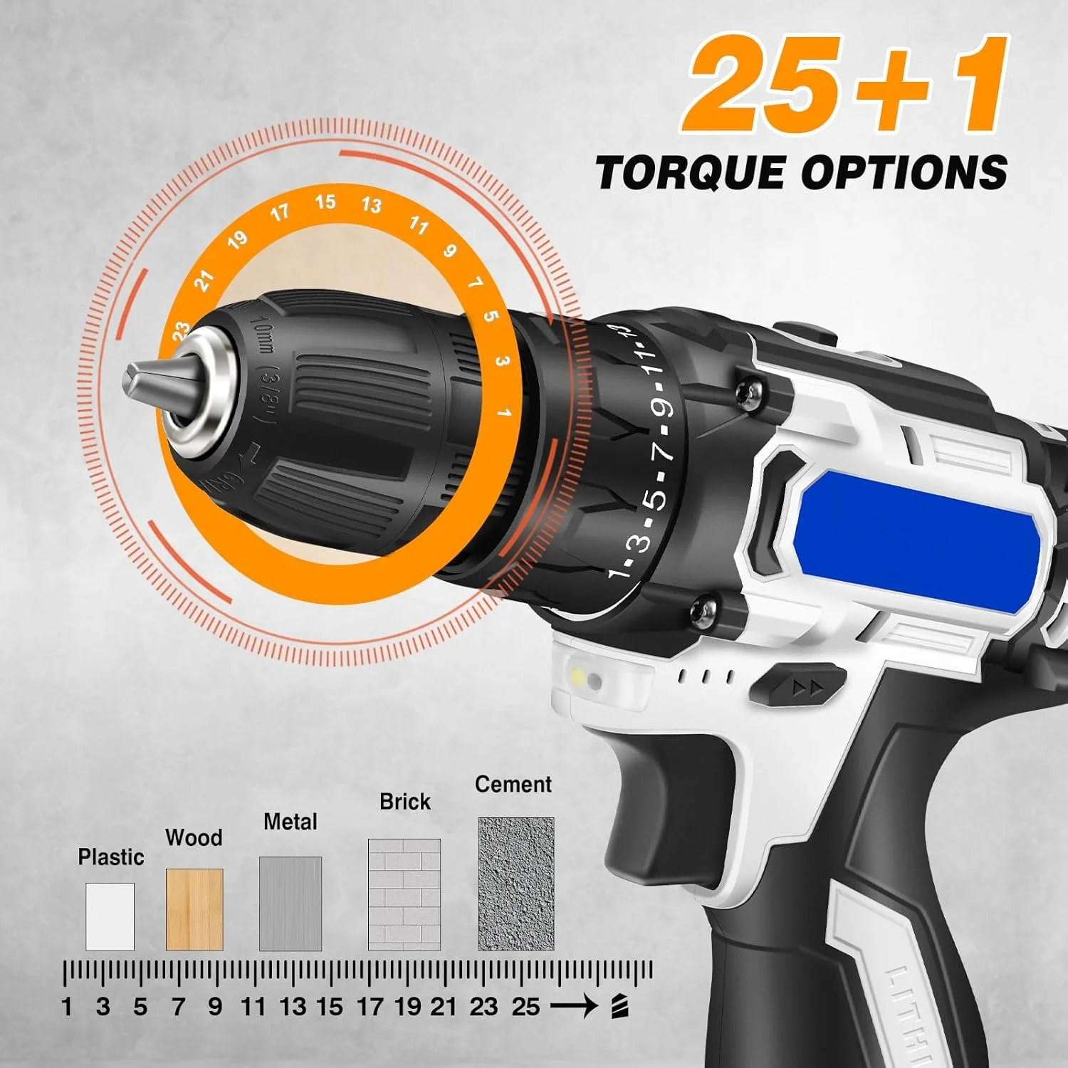 2.2 VERSATILE SPEED: The Power Drill can be set to run at two different speed ranges (0 – 400 RPM, 0 – 1400 RPM), so you will always have the power you need. Includes 1 1500mAh Li-Ion battery, 1 quick charger, so you’ll have enough power to get any job done at any time.