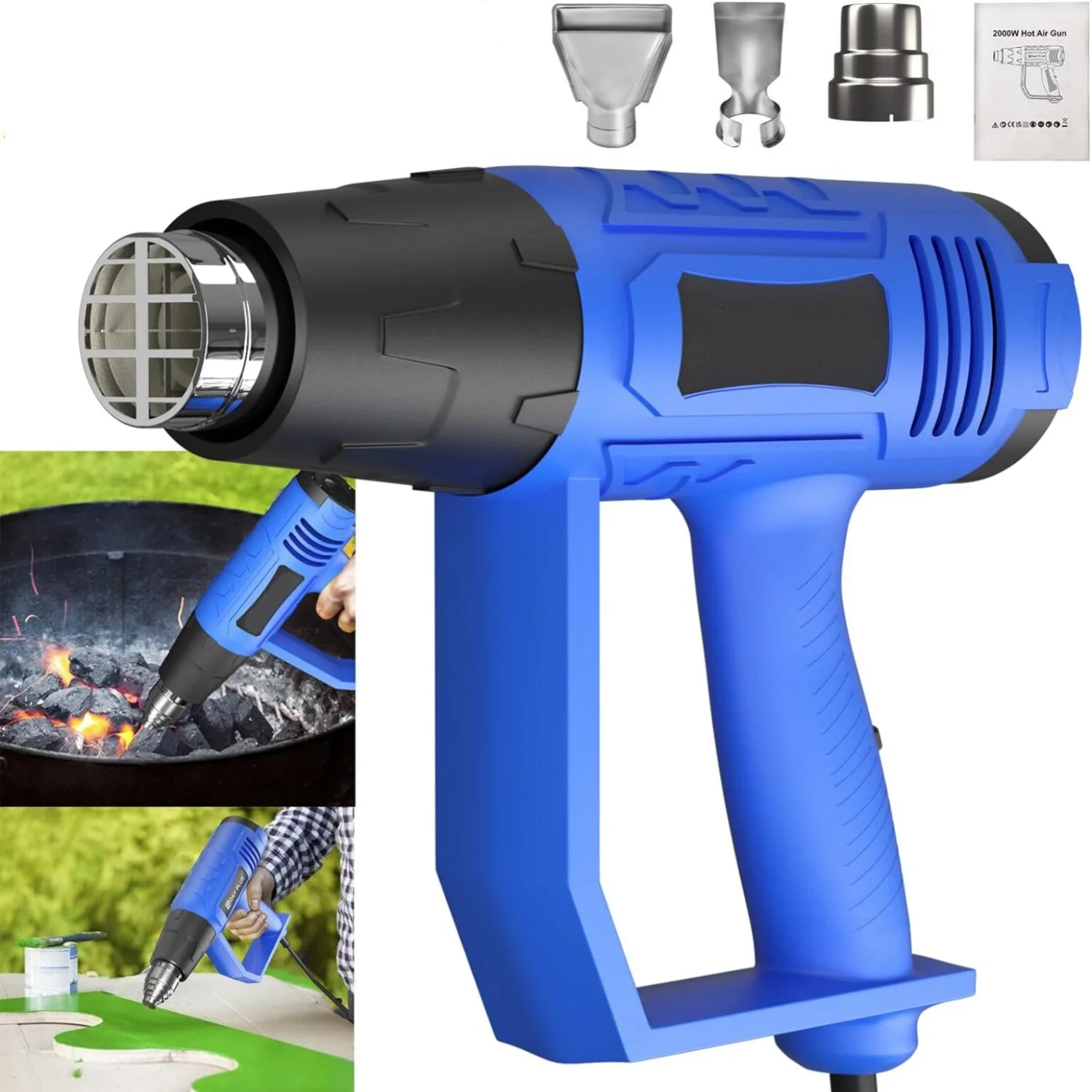 5.[What You Get] 1 x 2000W Heat Gun, 3 x Heat Gun Nozzles, 1x User Manual.