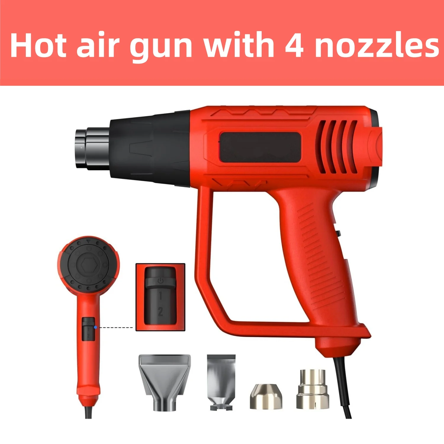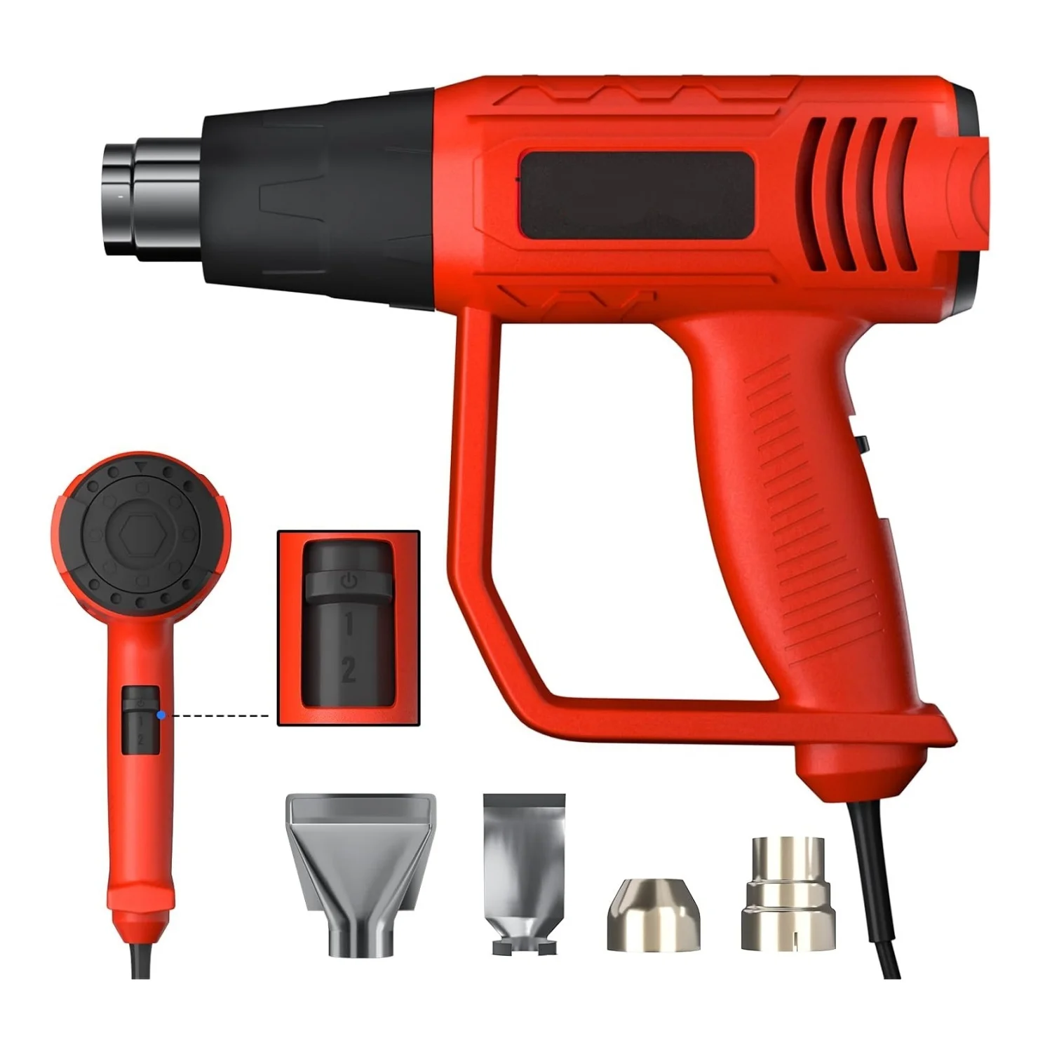 Cord Loose Handheld Heat Gun Hot Air Paint Overload Protection and 4 Nozzle Attachments RED-BLACK