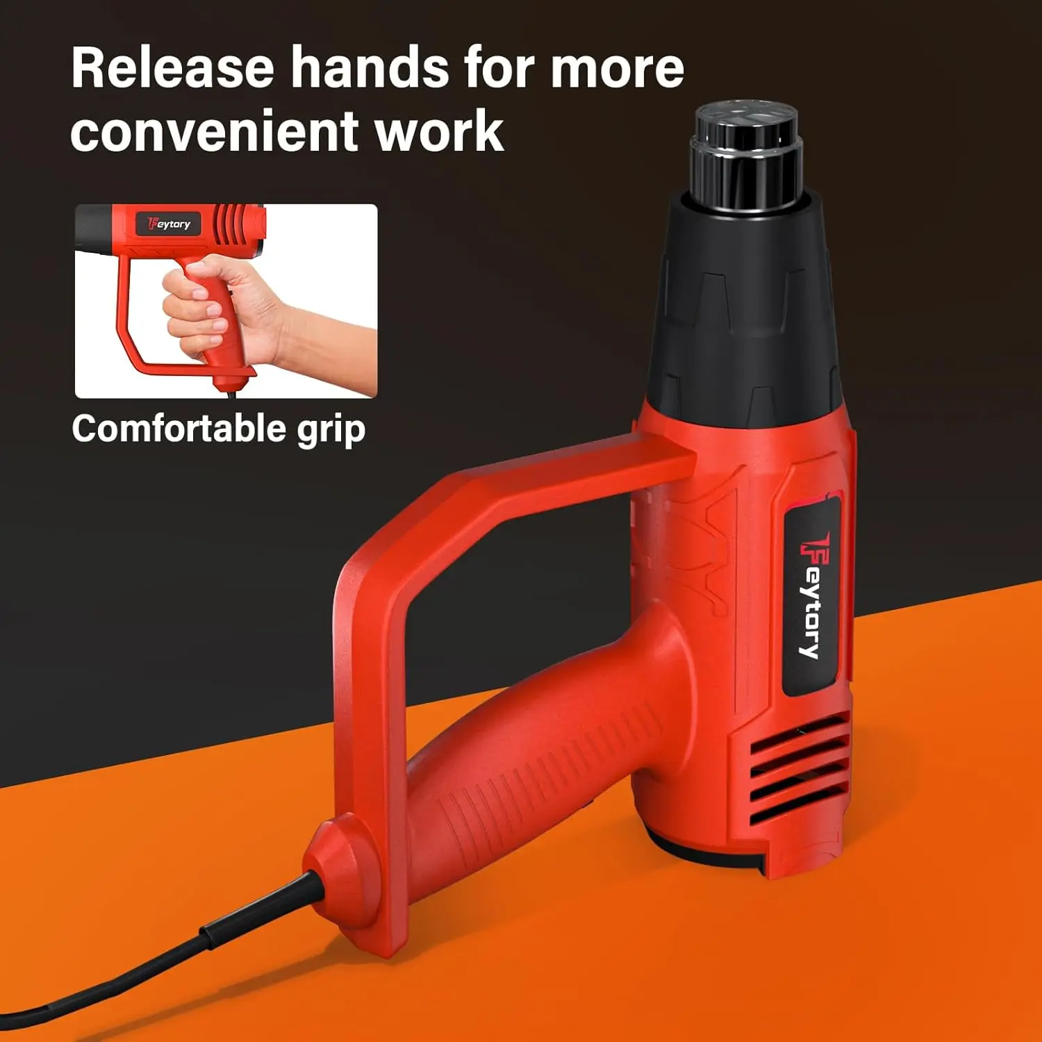 ▶ The heat gun has a scientifically ergonomically designed handle that prevents repetitive strain injuries and other musculoskeletal disorders; Ideal for shrinking heat-shrink tubing, shrink-wrapping, heating PVC, electronics, mobile phone repairs, removing paint or floor tiles, loosening rusty bolts, and other heating or defrosting purposes.