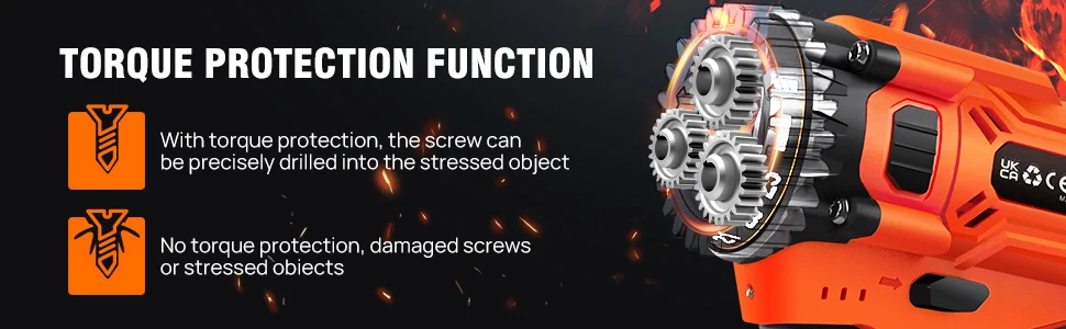 The switch of the drill is equipped with an LED light that allows screwing in a dark environment. The non-slip handle is very comfortable to hold thanks to its ergonomic design. Easy to carry with a sturdy belt clip. You can easily store the tools in the carry bag.