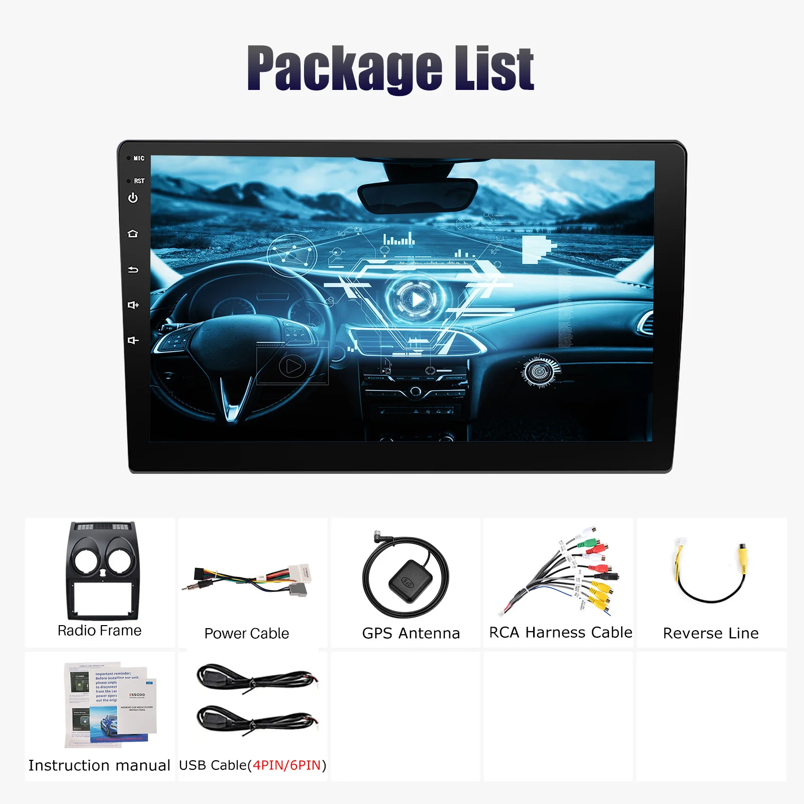 Built-in Gps,Voice Control,dsp,CarPlay,android auto,Reversing Input,Split Screen