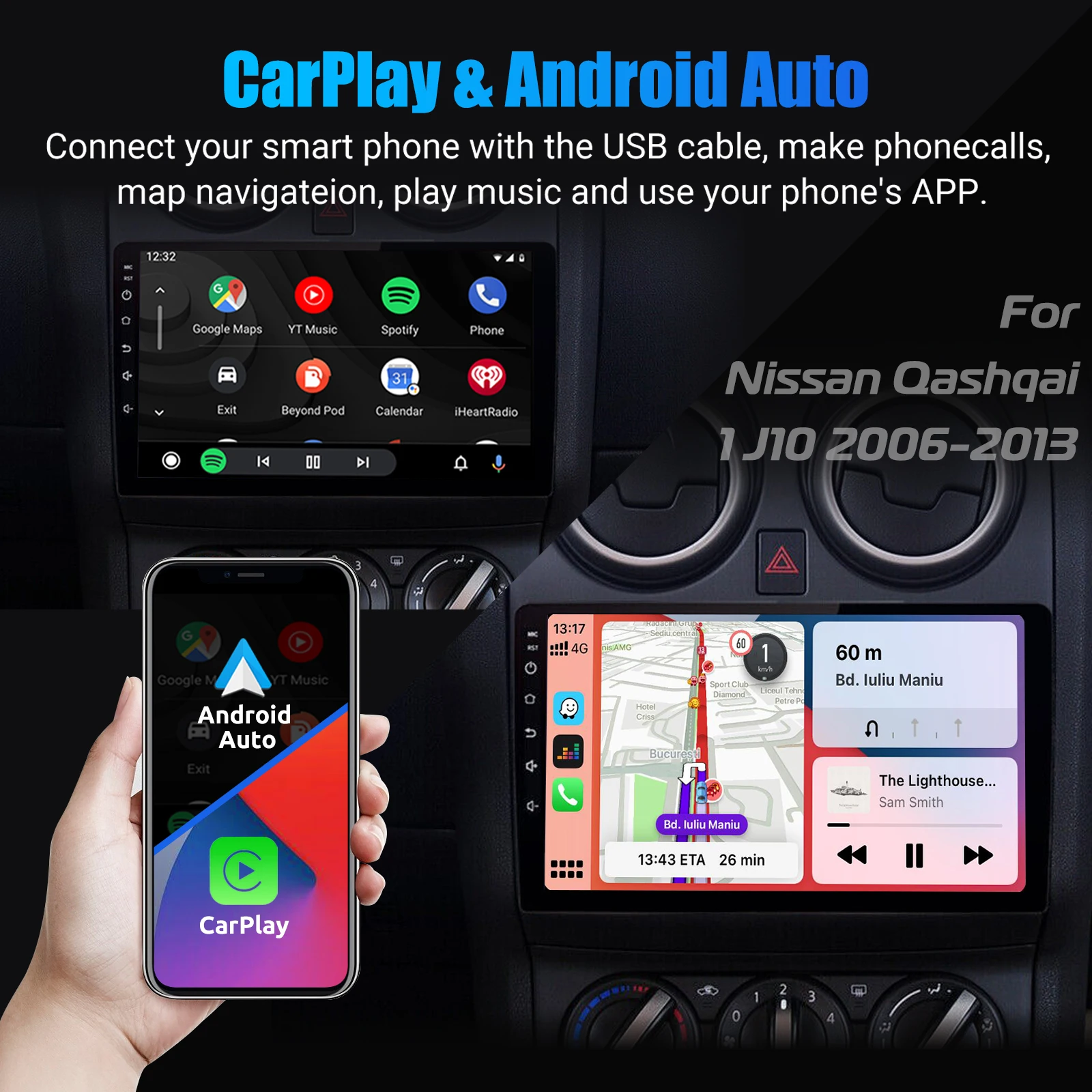 ESSGOO Car Radio For Nissan Qashqai J10 2008 – 2013 Wireless Carplay Android Auto 2 Din GPS Navigator Wi-Fi FM BT Car Stereo