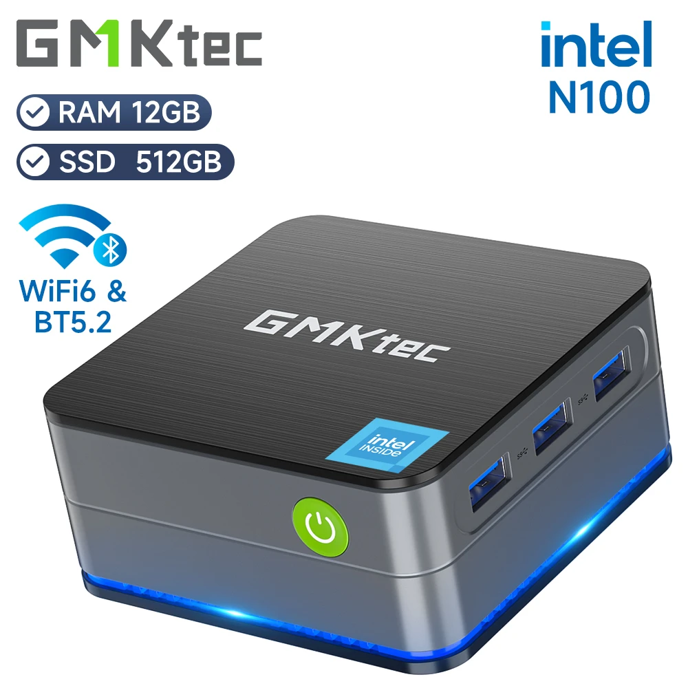 GMKtec mini pc equips with 4-core/4-thread intel N100, the base frequency is 1.8GHz / the dynamic frequency can reach 3.40GHz,with 12GB of memory capacity, and 512GB hard drive capacity provides ample storage space for all your files, documents, and media content.
