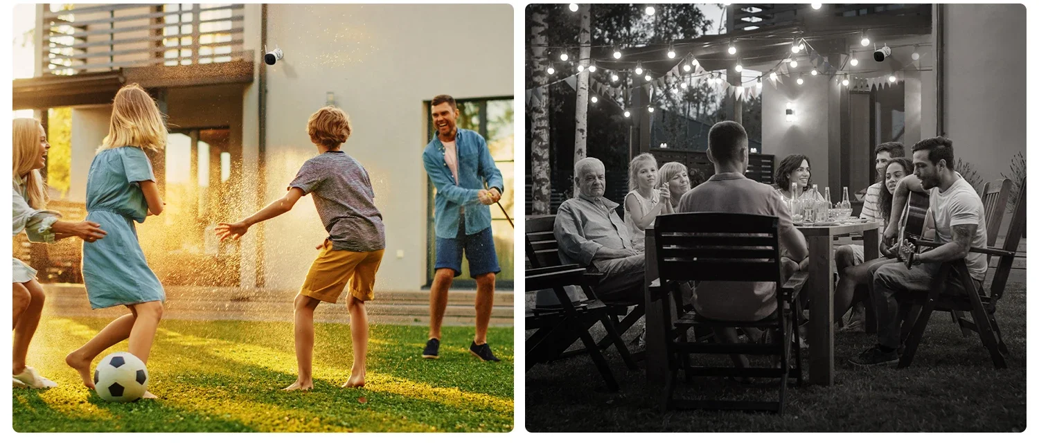 Advanced night vision technology enables the security camera to achieve early targeting across large areas in total darkness, any weather, or even fog over 98ft (30 m) away on a moonless, cloudy night, helping you reveal the secrets of the night around your house.