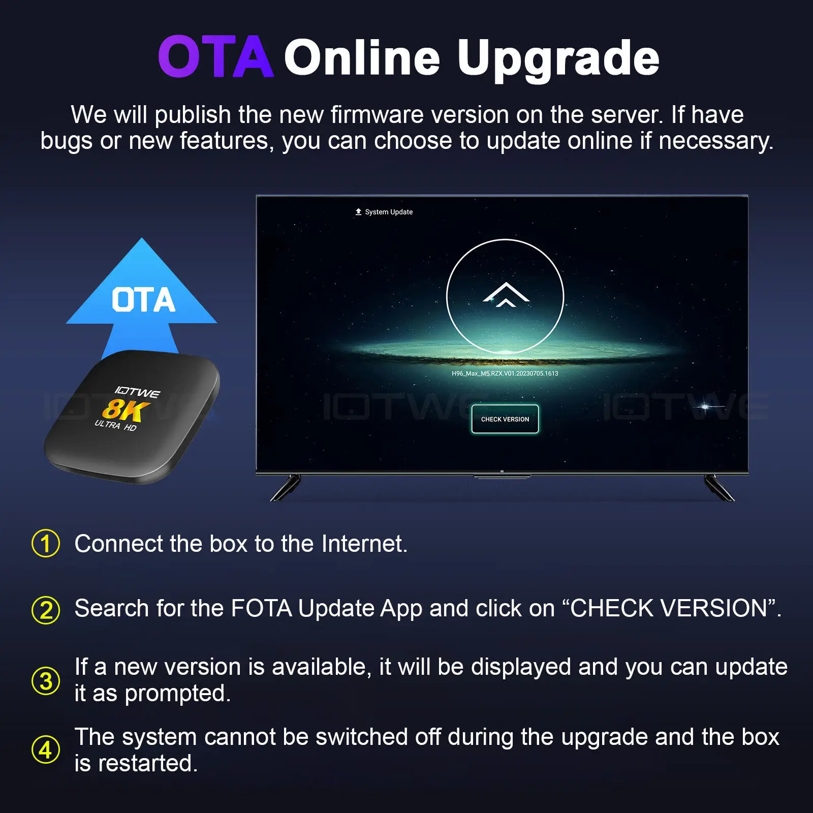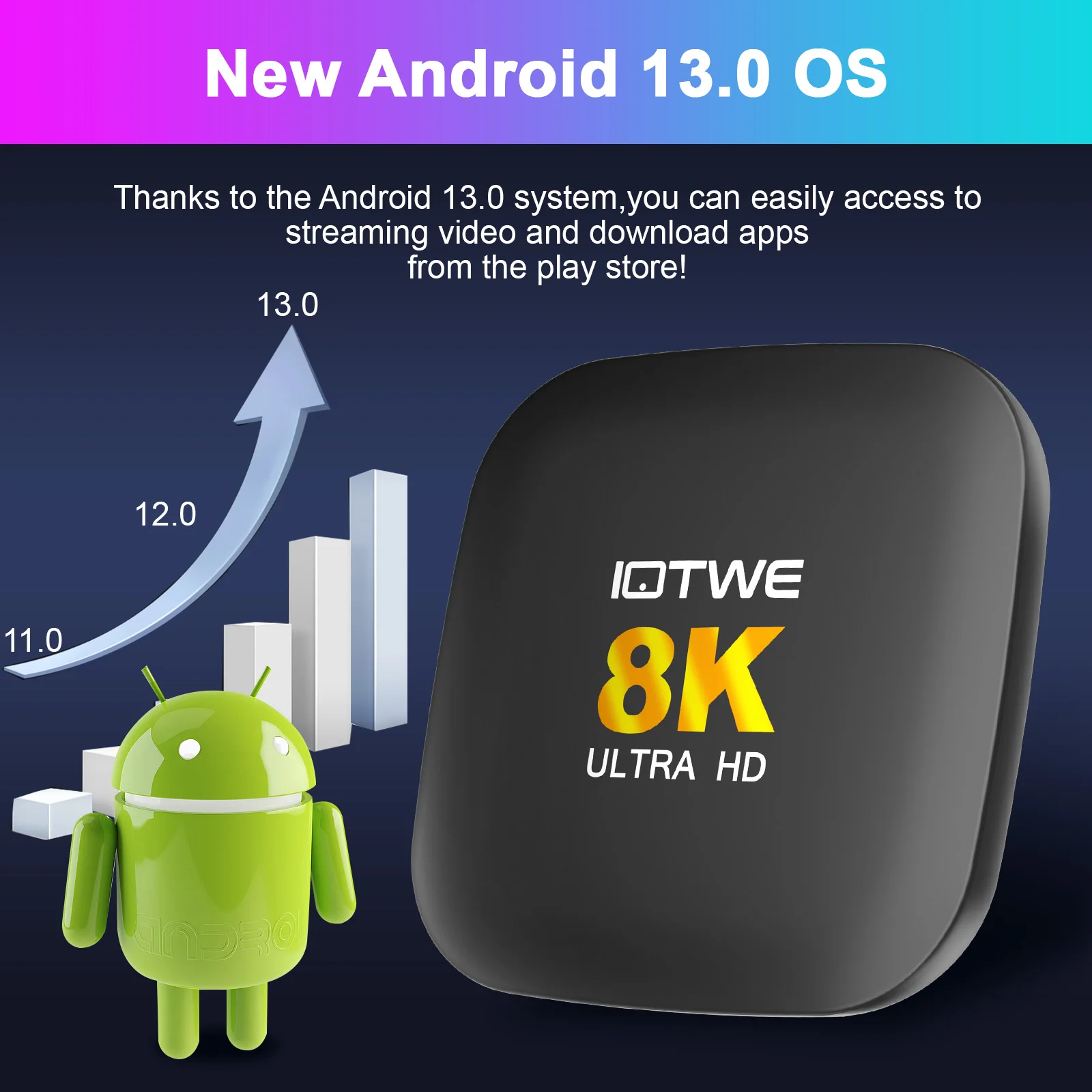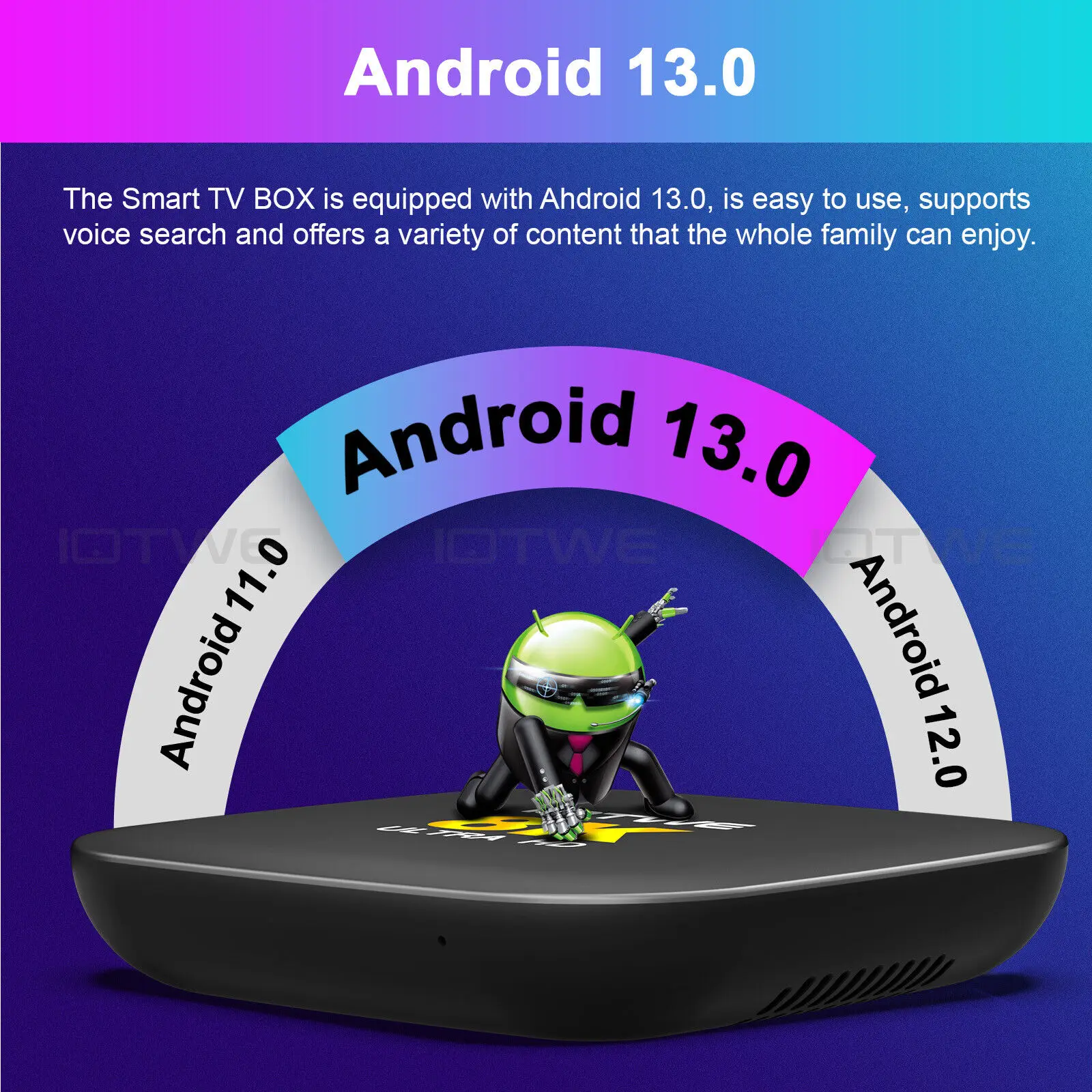 Our TV box, powered by the latest Android 13 operating system, brings several advantages to enhance your entertainment experience. With improved performance, security, and compatibility, as well as a more intuitive UI and future-proof features, it ensures a smooth and up-to-date entertainment experience.