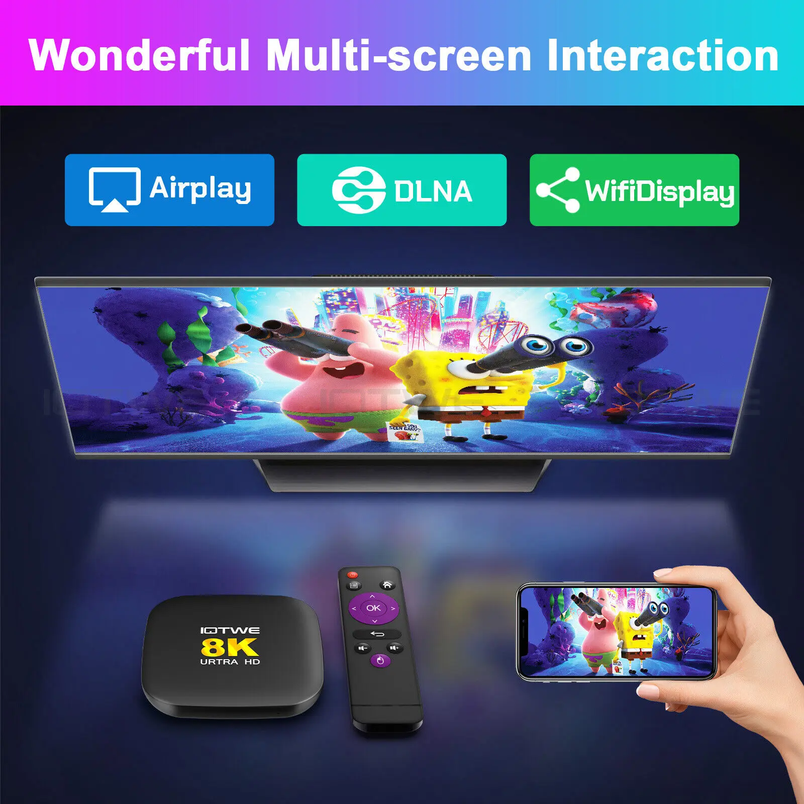 Our M2 TV Box supports Airplay, DLNA and WifiDisplay technologies, providing a variety of connectivity options for streaming and sharing multimedia content. Airplay allows users to wirelessly stream content from Apple devices, while DLNA enables seamless sharing between compatible devices. The WifiDisplay feature allows you to easily mirror the screen of Android devices or Windows PCs. These features increase the flexibility and convenience of our M2 TV Box and ensure users a seamless multimedia experience.