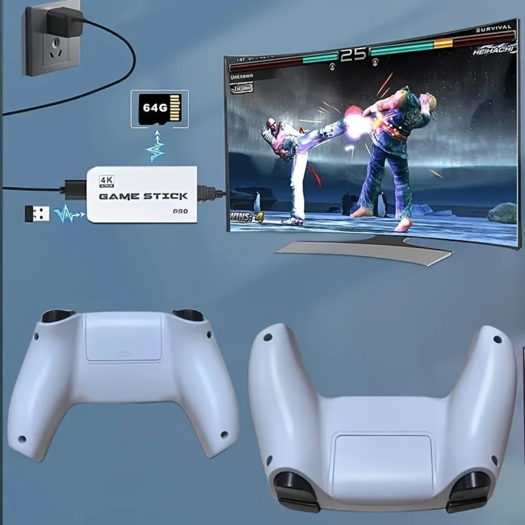 NEW M15 Mini TV Game Stick Handheld Console – 64GB 20000+ Retro Games, Wireless Controllers, HD Output, Two-Player Support for P