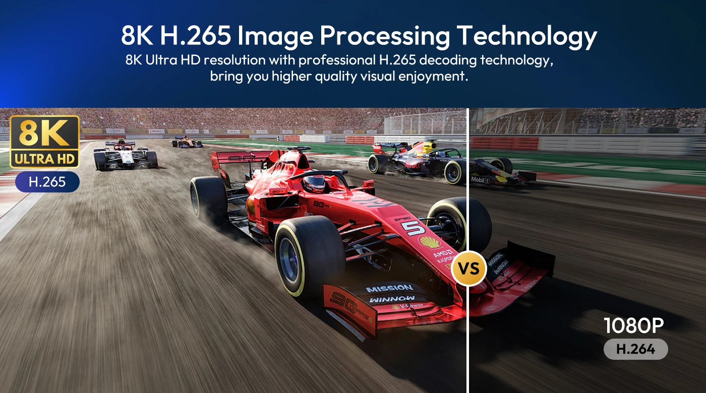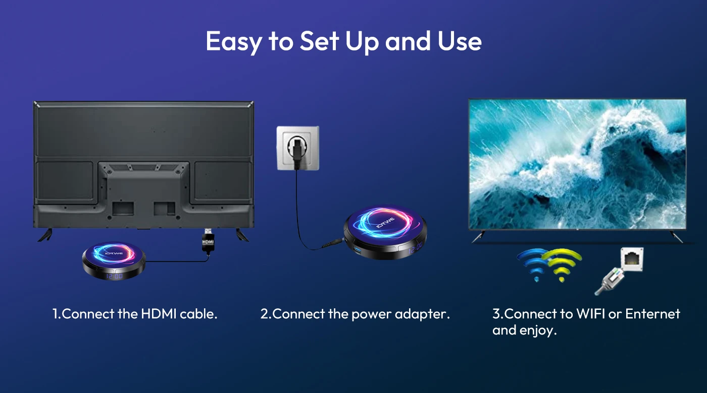 The Android TV Box running on Android 13.0 offers remarkable stability and enables the effortless loading of movies, pictures,pictures, and games, eliminating any buffering annoyances. It presents an enhanced performance and an intuitive user experience, thanks to its sleek and stable interface. Powered by the potent RK3528 Quad-Core Processor and state-of-the-art image processing technology, it delivers an exceptional encounter, characterized by swift operational speed and top-notch image quality.【4GB ROM & 32 ROM】
