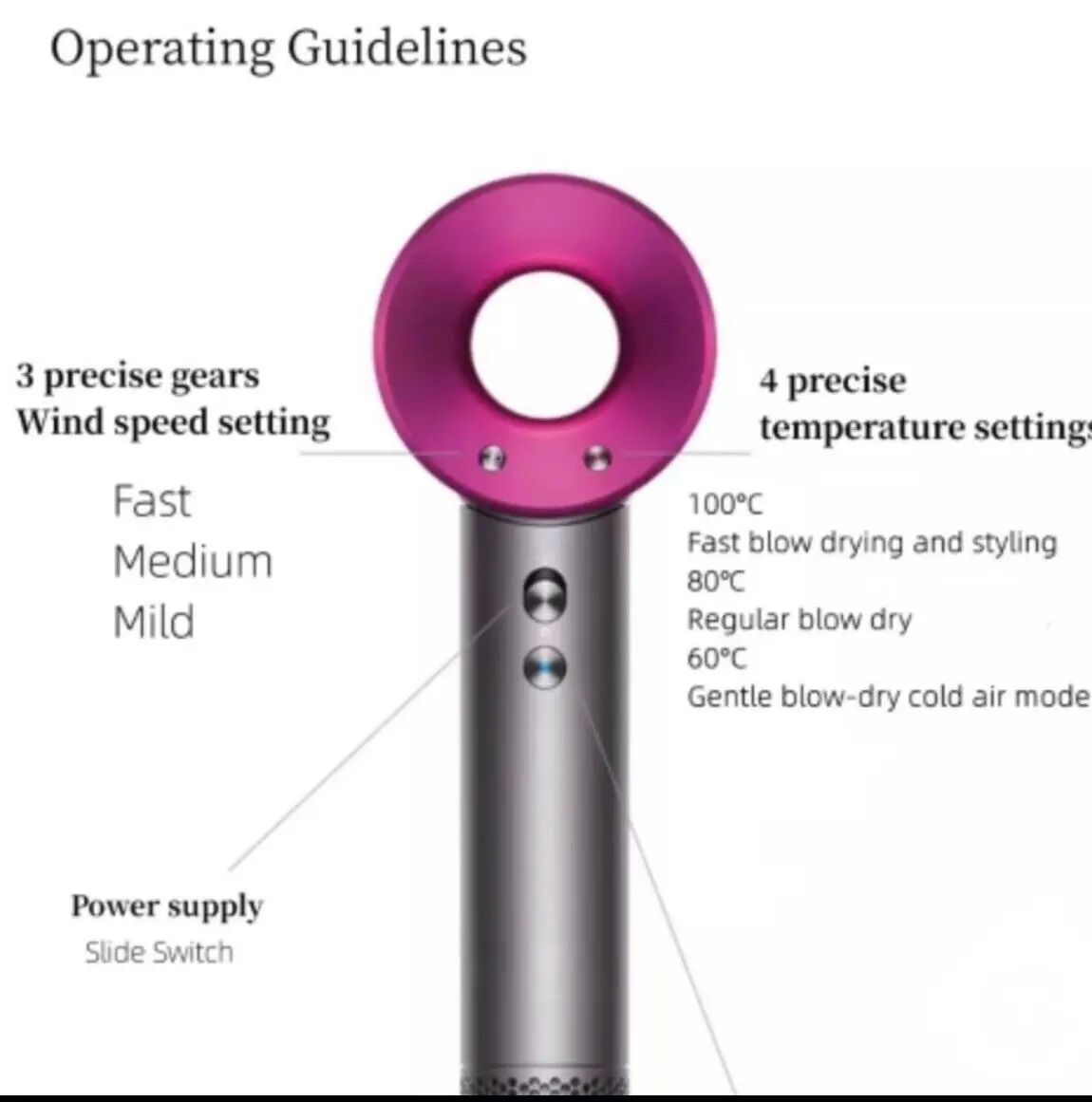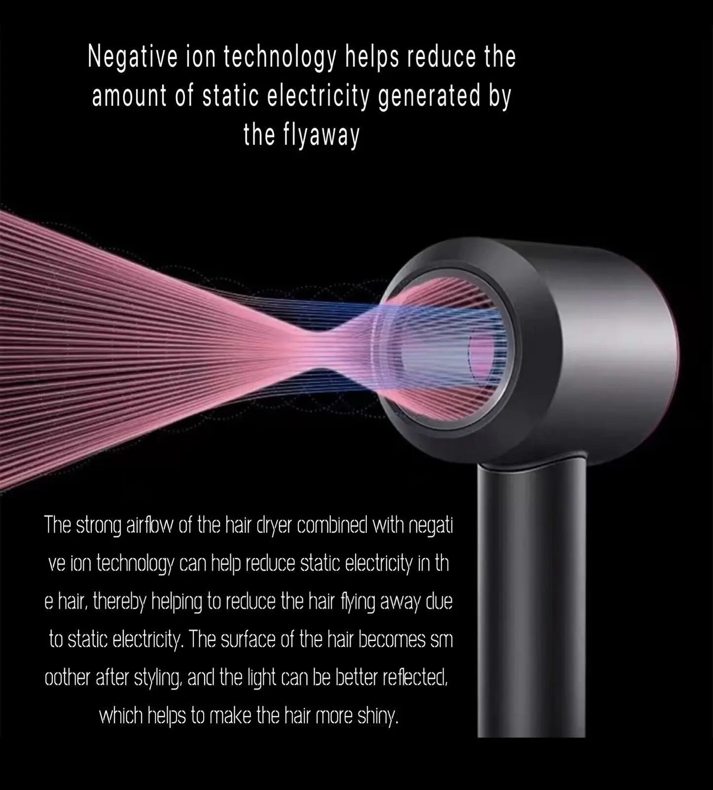 Super strong wind power, no hair damage, one click hot and cold switching, no leaf static electricity, negative ions, no hair damage, hair dryer