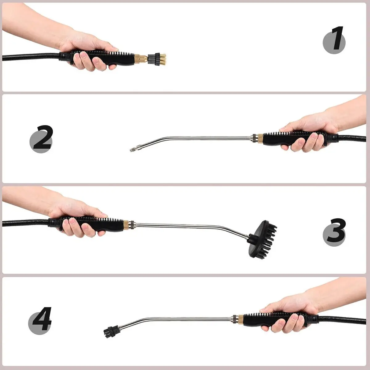 - IncludedAccessories:Â Extended elbow nozzle *1 steel brush *1 brush *1 large brush *1