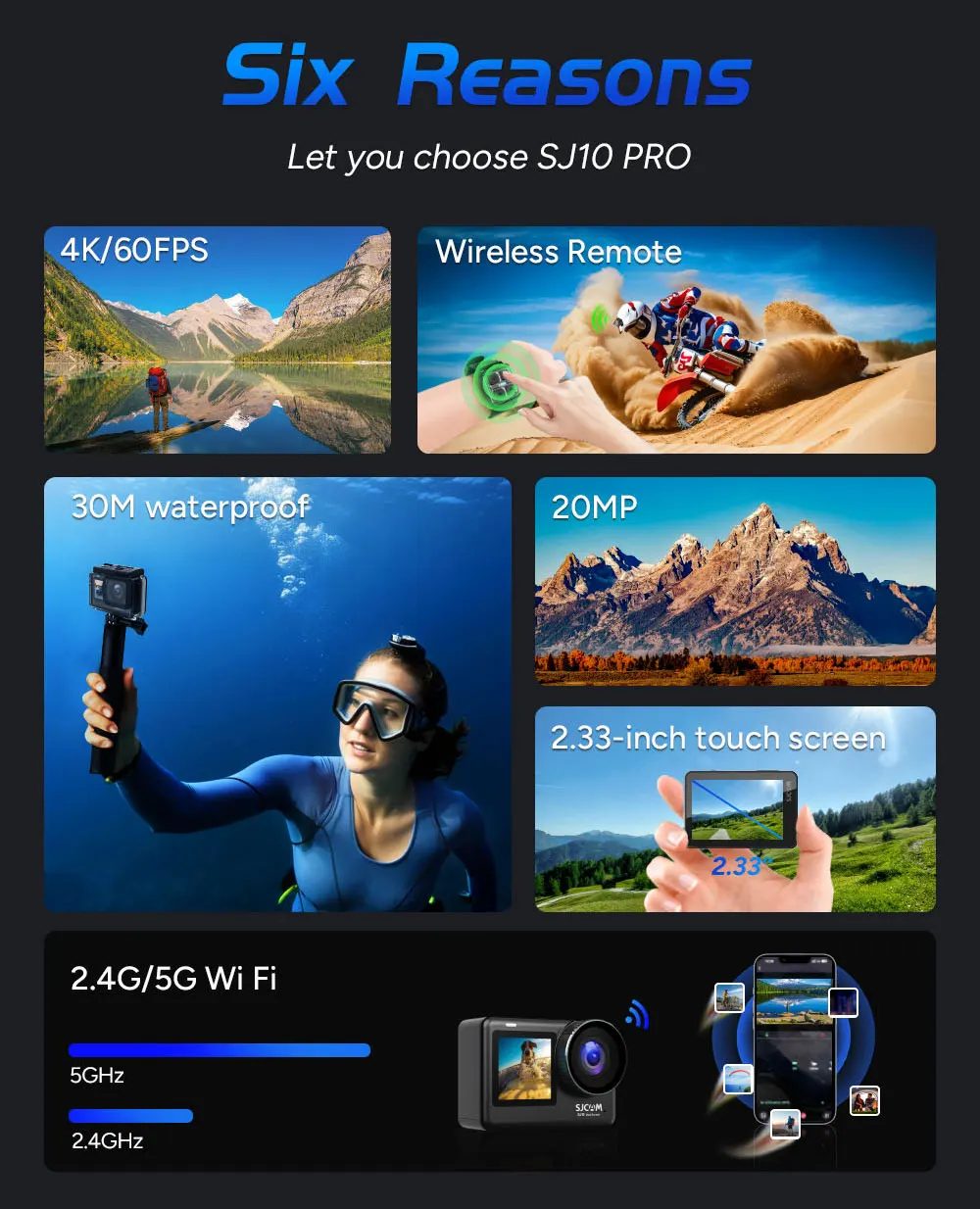 SJCAM SJ10 Pro Action Camera 4K Waterproof 2.33″ Touch Screen Camera 5G WiFi Night Vision Active HDR Video Sports DV