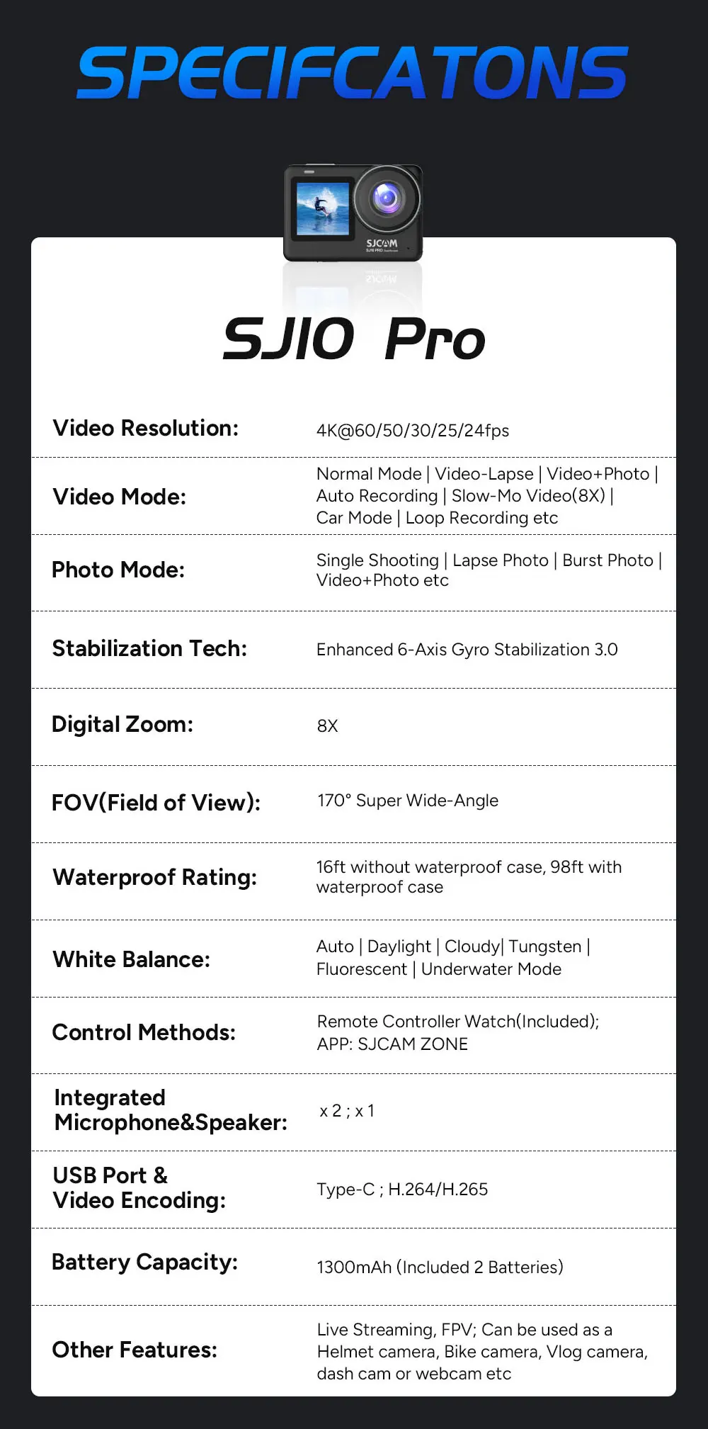 - sjcam Model:Â SJ10 PRO Dual Screen